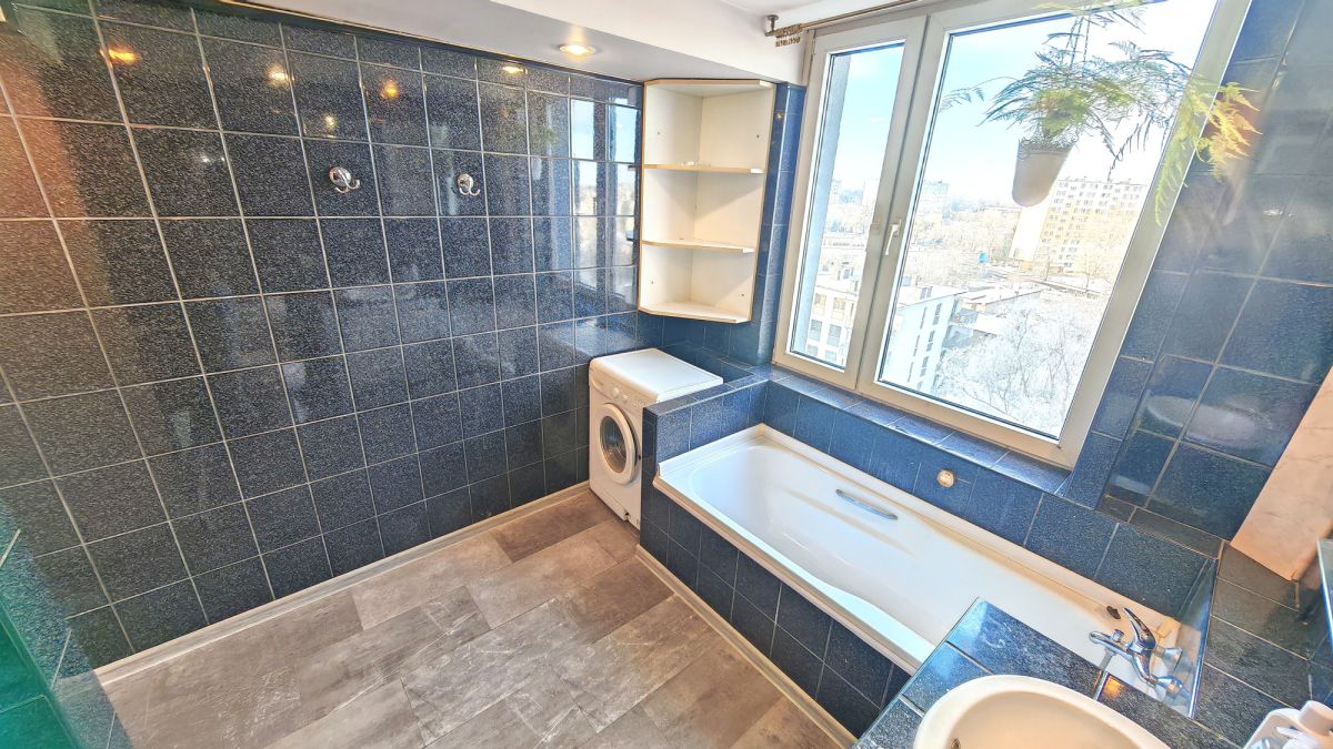 - duża łazienka z oknem, wyposażona w wannę oraz prysznic.