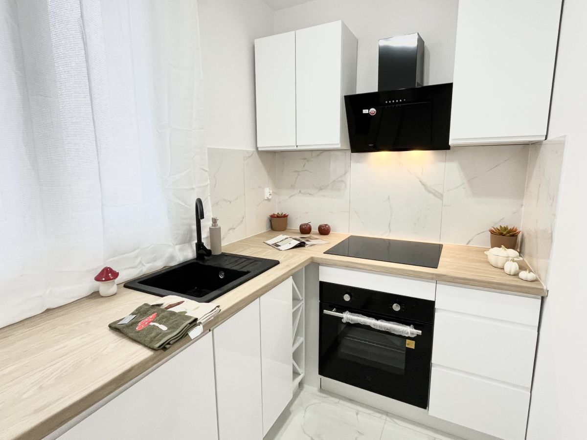 - kuchnia w zabudowie wyposażona w niezbędne sprzęty AGD (piekarnik, zmywarka, płyta indukcyjna),