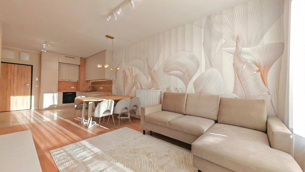 W cenie wykończenie mieszkania pod klucz wraz z meblami na wymiar, AGD oraz ruchomościami, takimi jak sofa, stół z krzesłami, łóżko w sypialni etc.