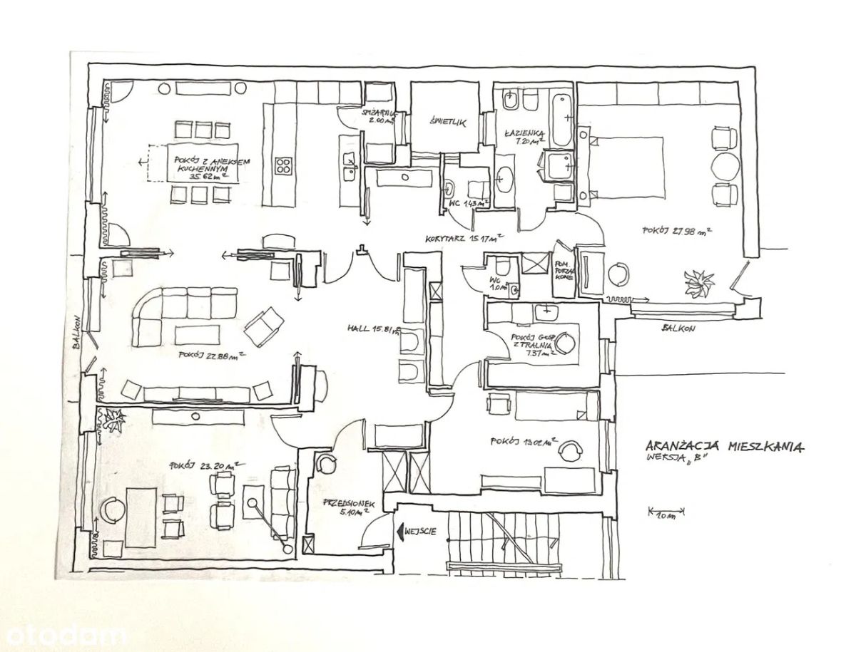 -mieszkanie posiada dwa niezależne wejścia z klatki schodowej i dwie odrębne księgi wieczyste, dające możliwość podziału na dwa niezależne lokale.