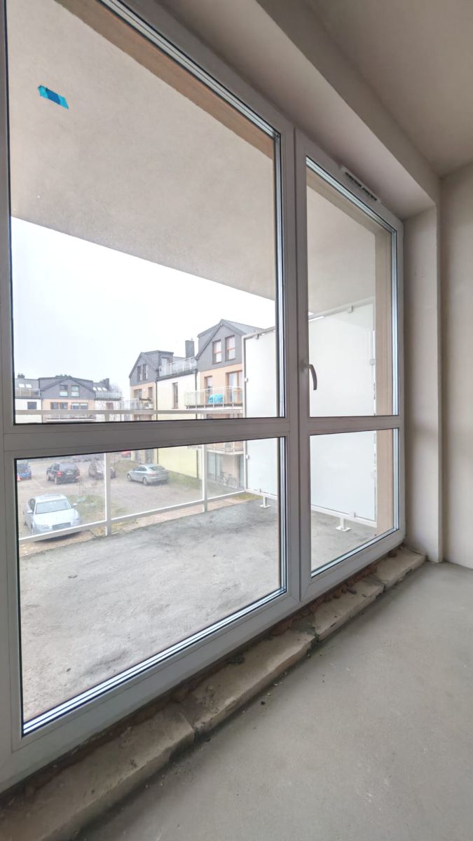- wygodny salon z miejscem na aneks kuchenny - idealny do stworzenia przestrzeni dziennej z dostępem do światła przez duże drzwi balkonowe,