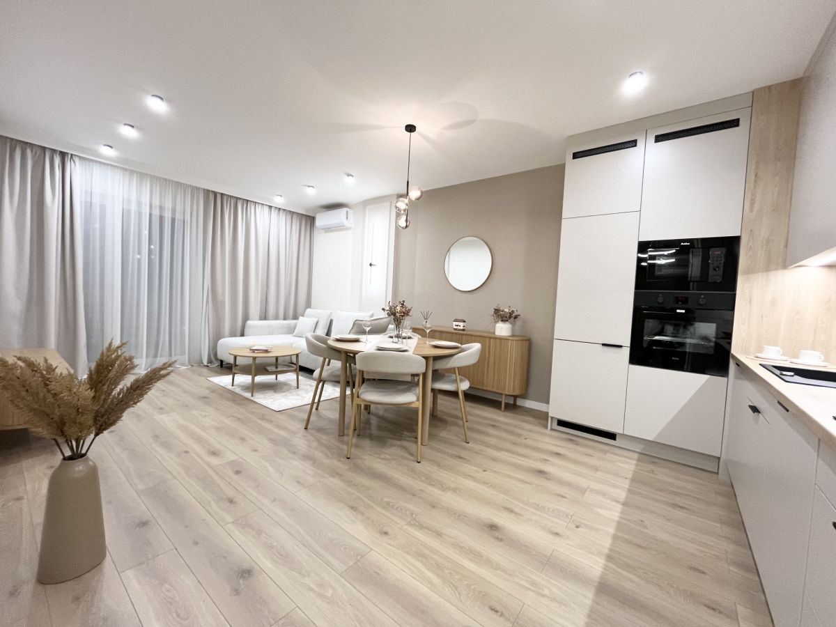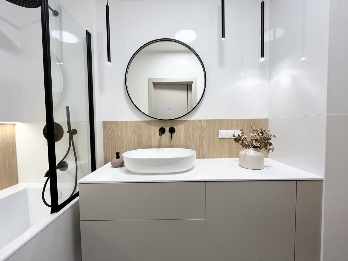 Mieszkanie zaprojektowane z dbałością o detale, wykończone materiałami najwyższej jakości. Jasne i pełne światła wnętrze sprzyja codziennemu komfortowi.