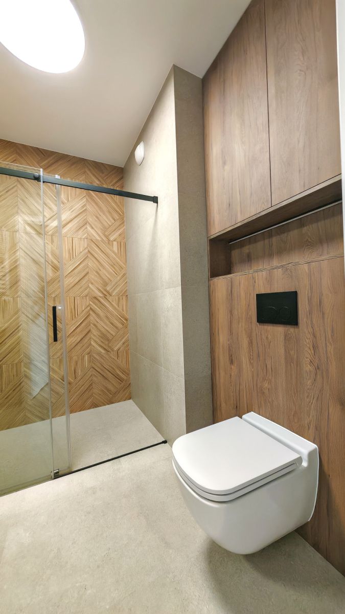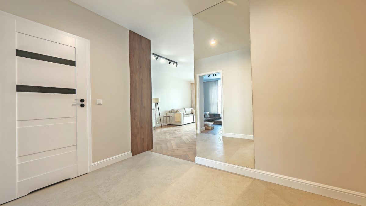 Apartament został wykończony w wysokim standardzie, z wykorzystaniem nowoczesnych materiałów i stonowanej, ponadczasowej kolorystyki.