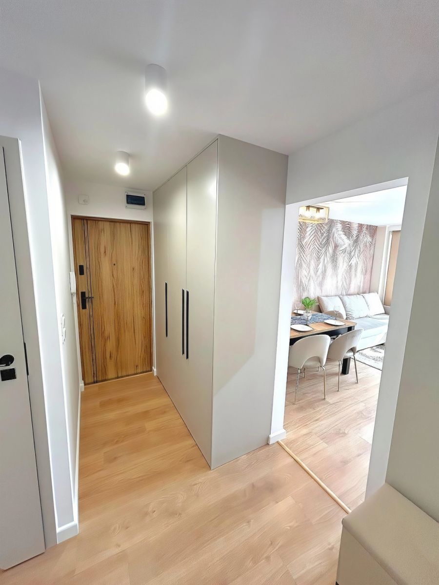 W przedpokoju wnęka na dużą szafę w zabudowie
