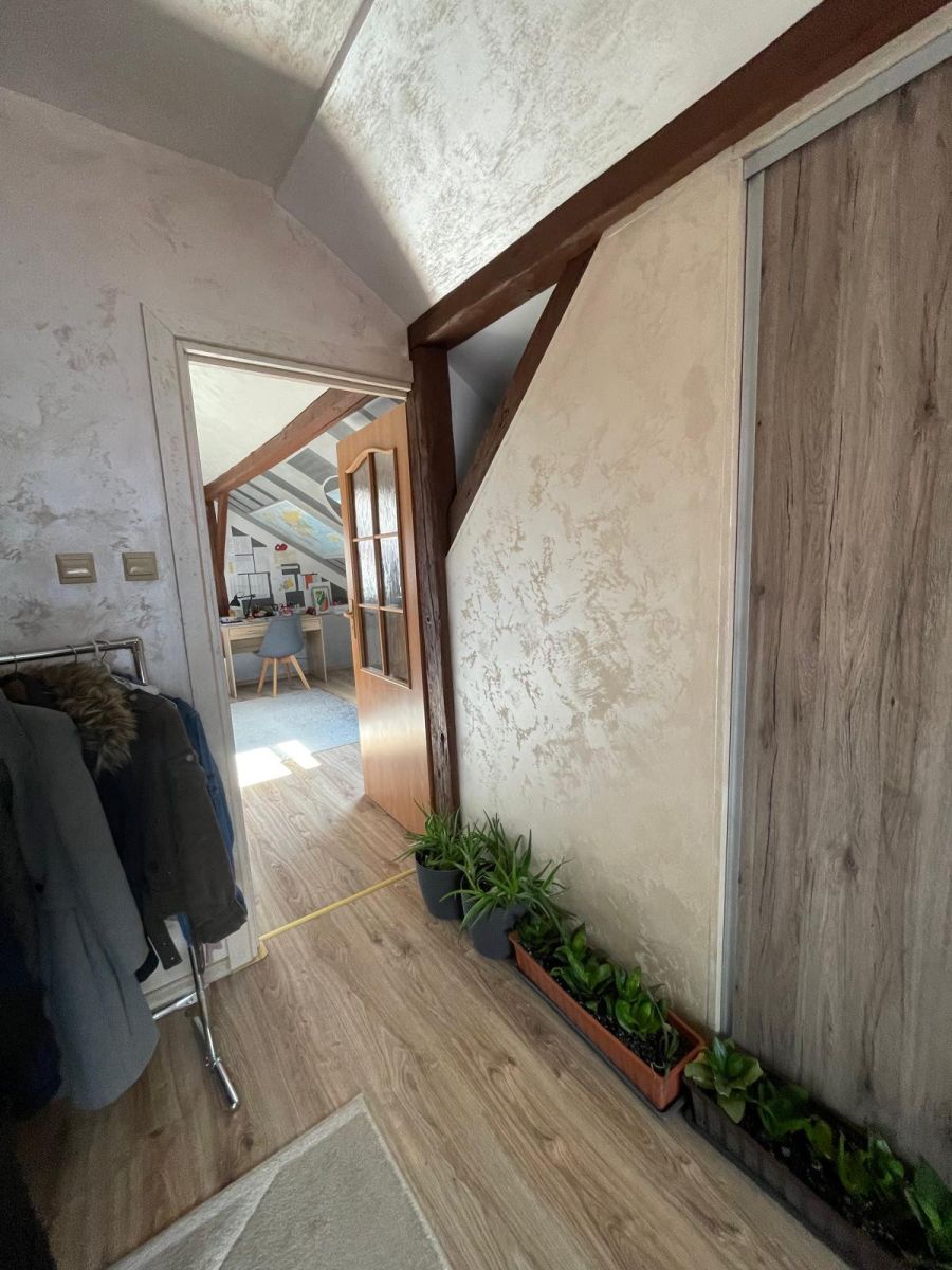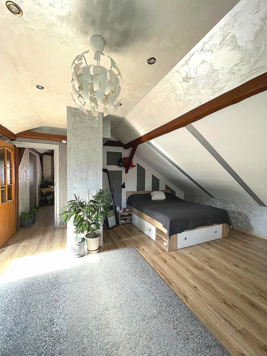Wejście na poddasze po wygodnych schodach „młynarskich” z pokoju, który zarazem stanowi „klatkę schodową”.