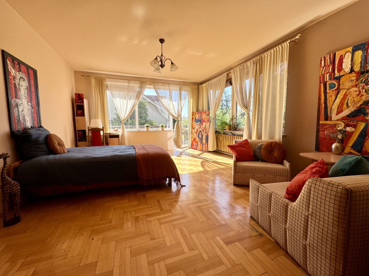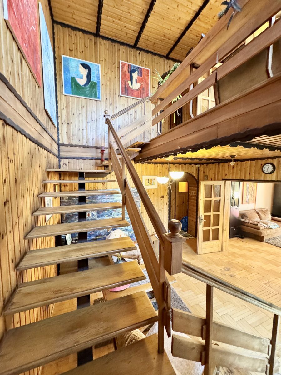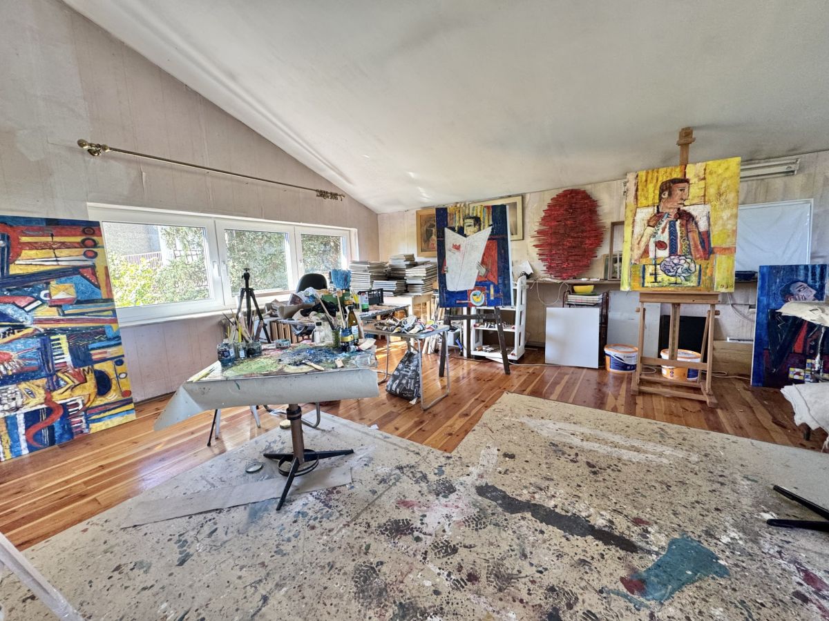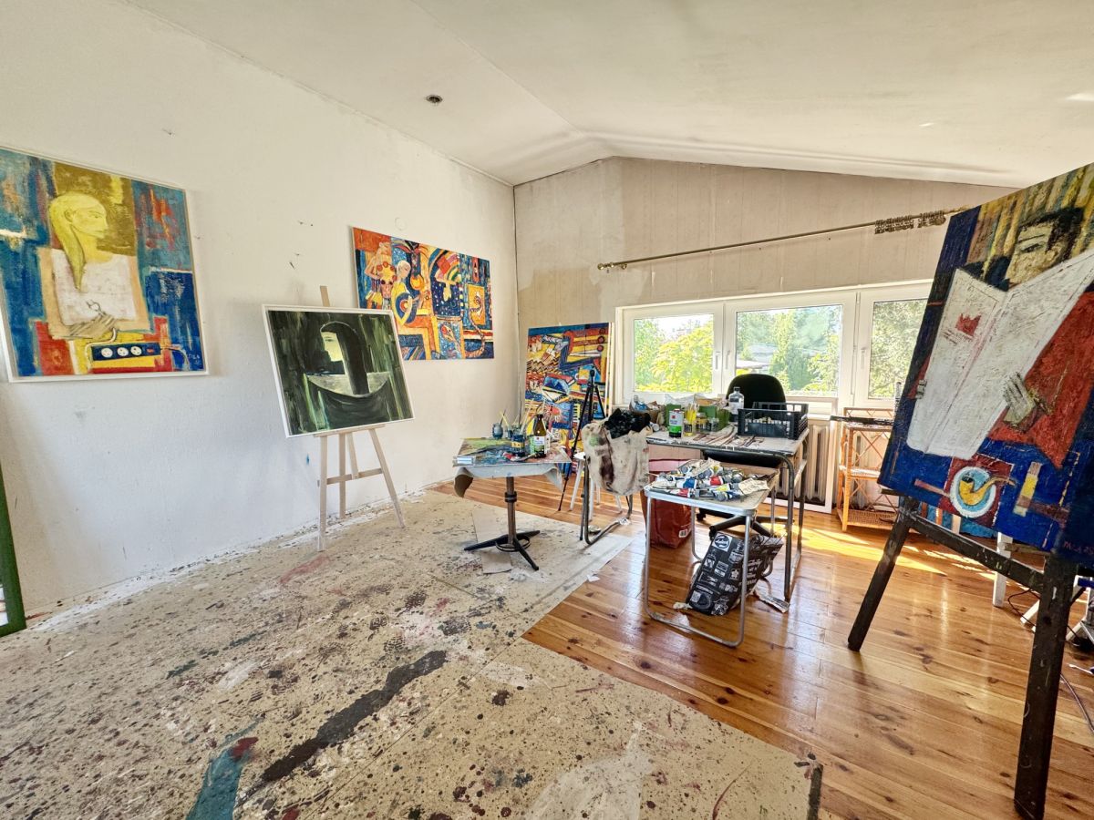 - pracownia artystyczna nad garażem z wyjściem na uroczy balkon ( w całej pracowni na podłodze leżą piękne deski - częściowo przykryte i zabezpieczone )