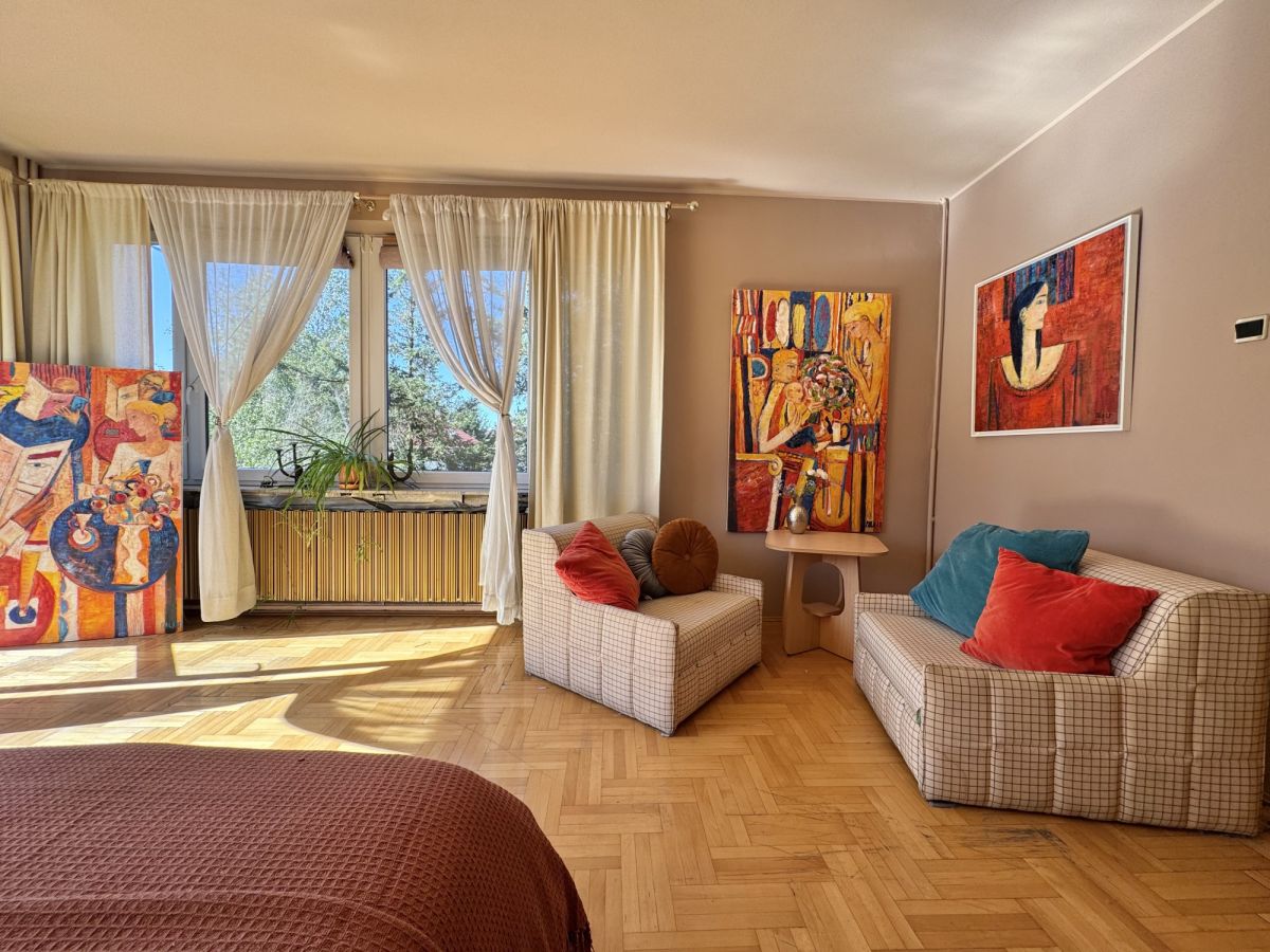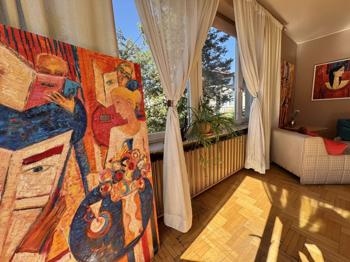 Jak widać na zdjęciach dom należy do artysty nietuzinkowego i kolorowego a przede wszystkim cieszącego się uznaniem zarówno w kraju jak i za granicą. Jeśli ktoś byłby zainteresowany zakupem jego obrazów - zapraszam do kontaktu. To twórczość która wprowadza do wnętrza kolor, porusza energię i zaprasza do kontemplacji. Co więcej na nowego właściciela domu - jeśli okaże się być wrażliwy na polską sztukę - czeka nie lada gradka, gdyż będzie mógł wybrać sobie jeden z obrazów artysty oraz liczyć na jego osobistą dedykację.