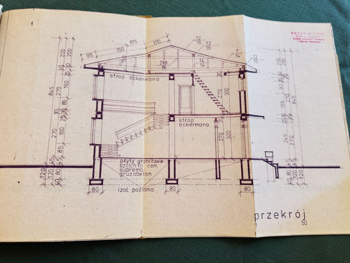 - dom wybudowany w technice tradycyjnej, ławy fundamentowe z betonu żwirowego, mury konstrukcyjne z pustków MAXI i cegły pełnej, stropy Ackermana, schody drew. na konstrukcji stalowej, posadzki betonowe