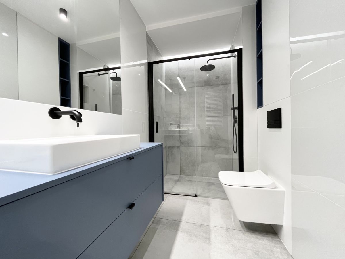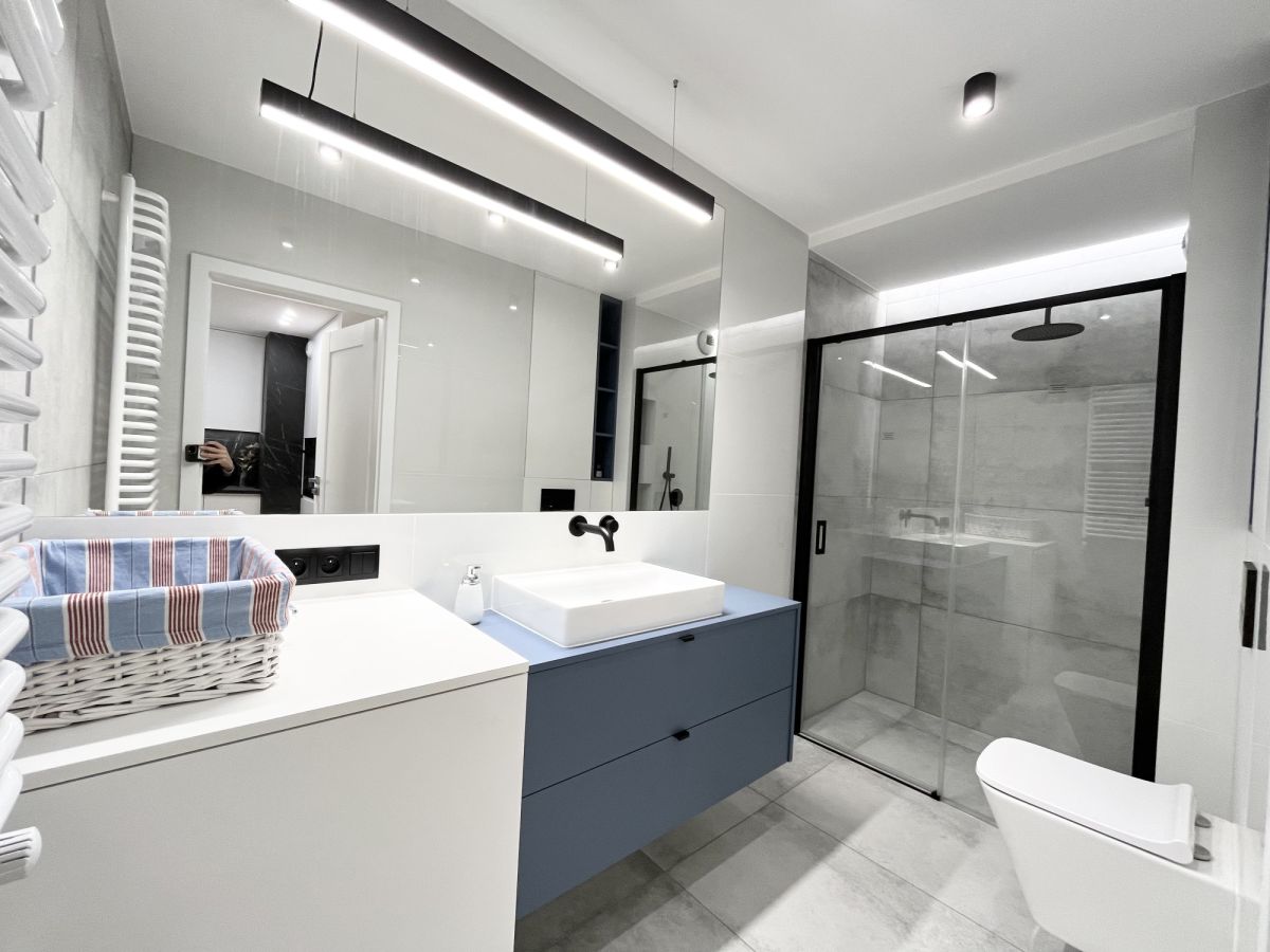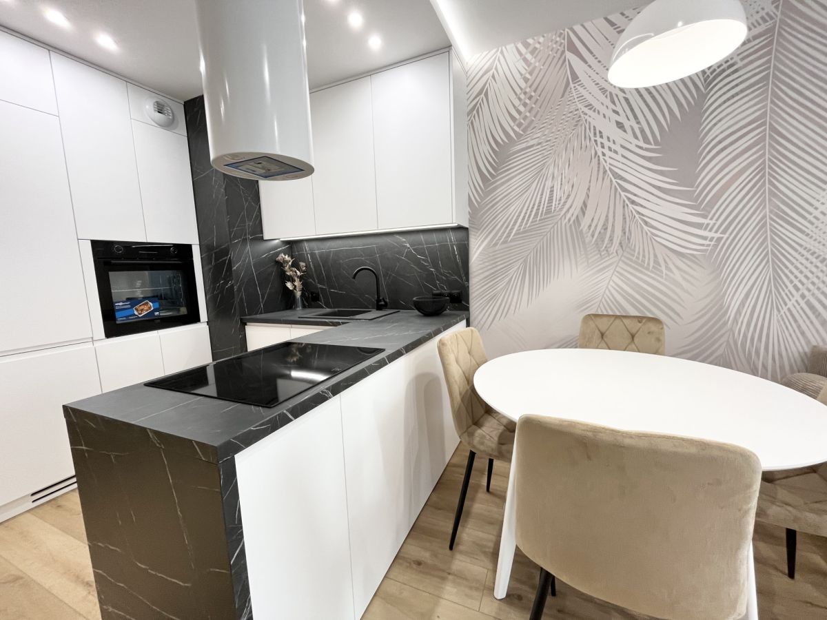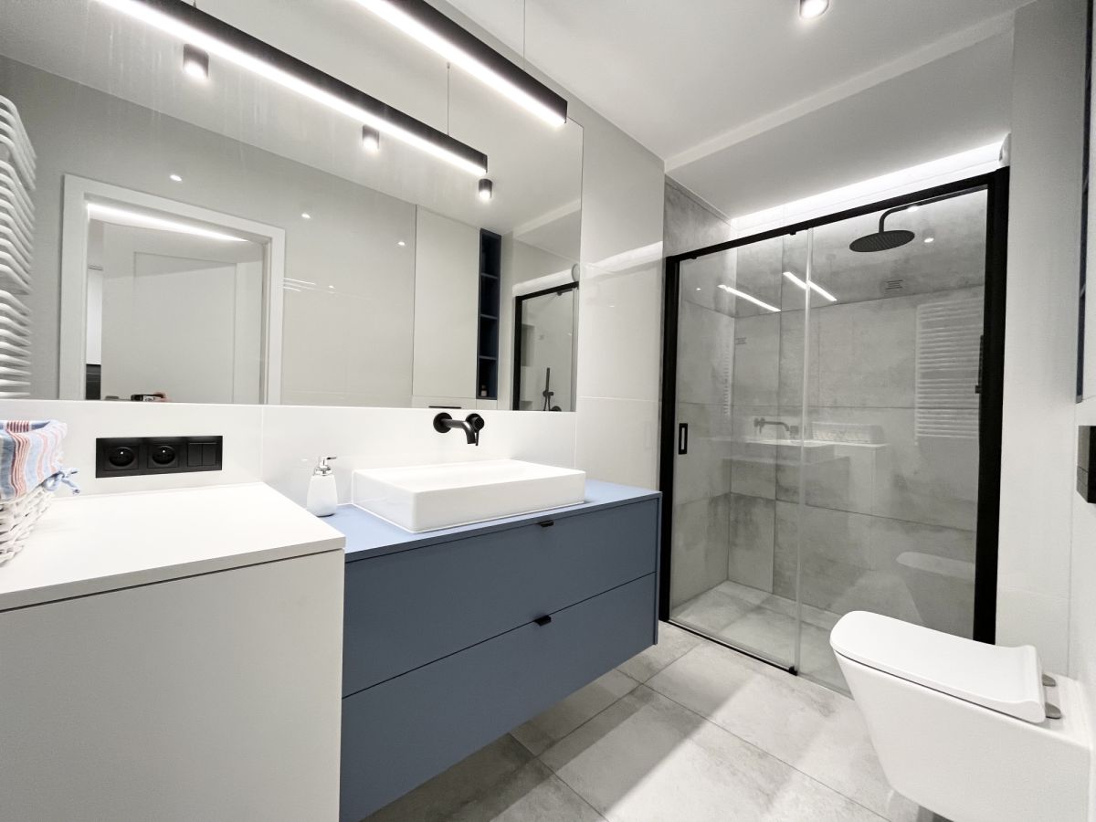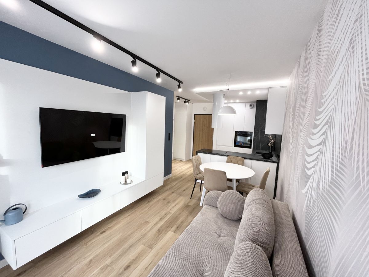 Apartament został wykonany z najwyższą starannością oraz dbałością o detale i funkcjonalność (dużo szaf i miejsca do przechowywania). W pełni wyposażony we wszystkie niezbędne AGD oraz meble (kuchenne AGD, pralko - suszarka, TV etc.)