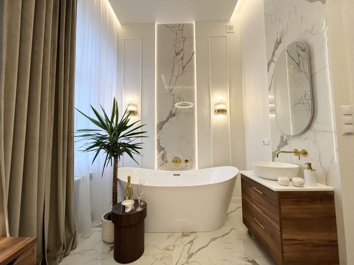 Mieszkanie zostało wykończone w wysokim standardzie, z dbałością o każdy detal.