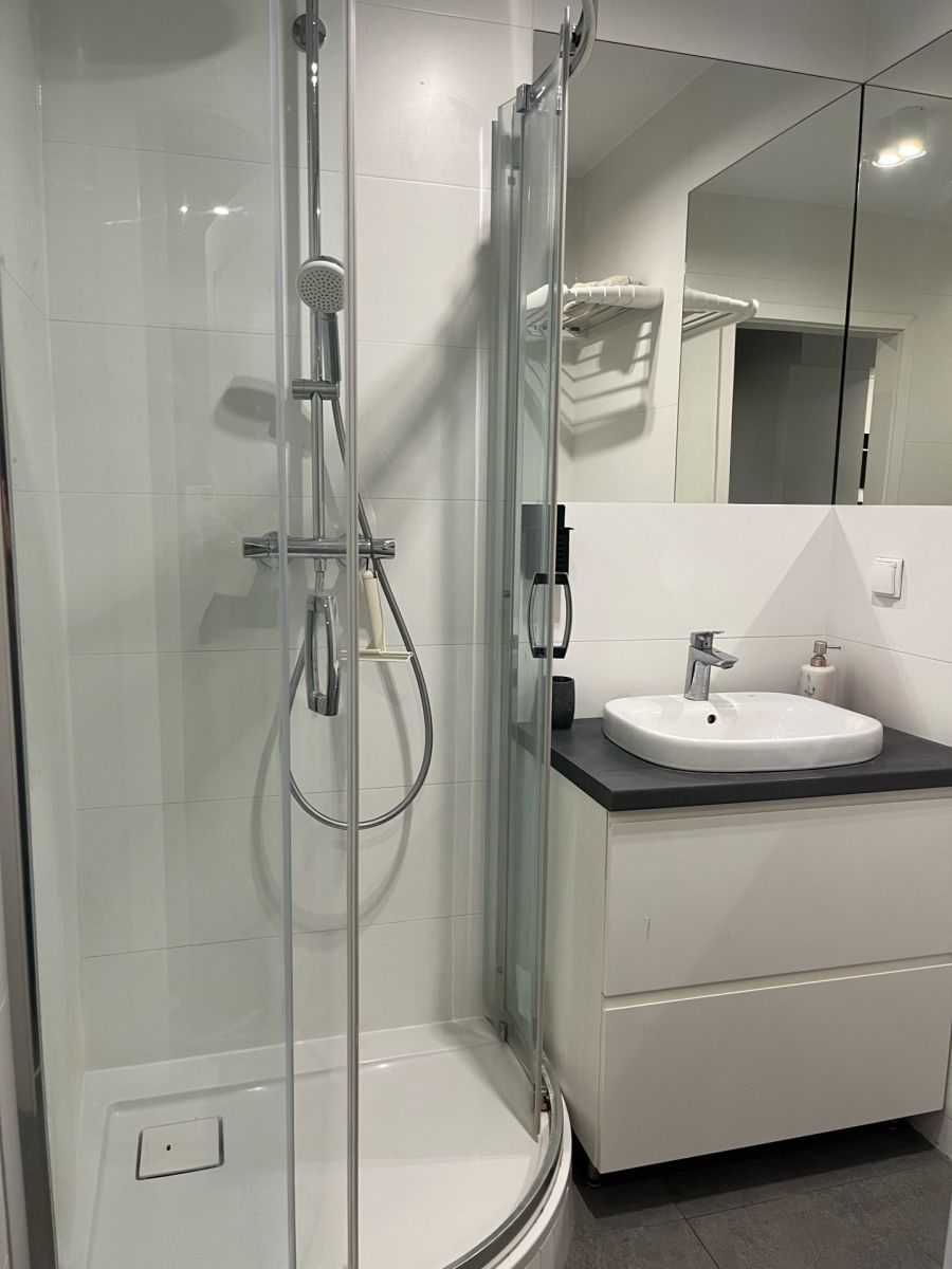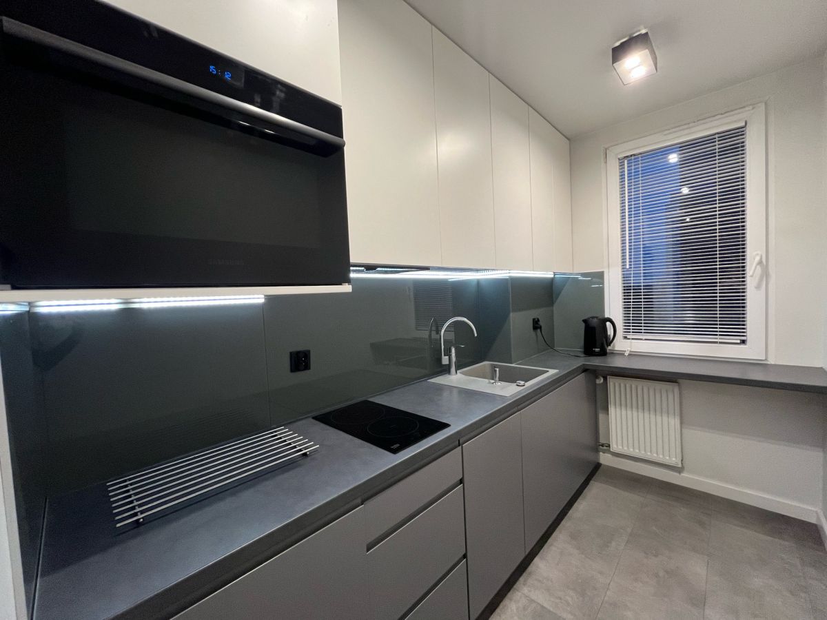 - nowoczesne AGD (lodówka, piekarnik 2 w 1 z mikrofalą, płyta indukcyjna, okap, pralko-suszarka),