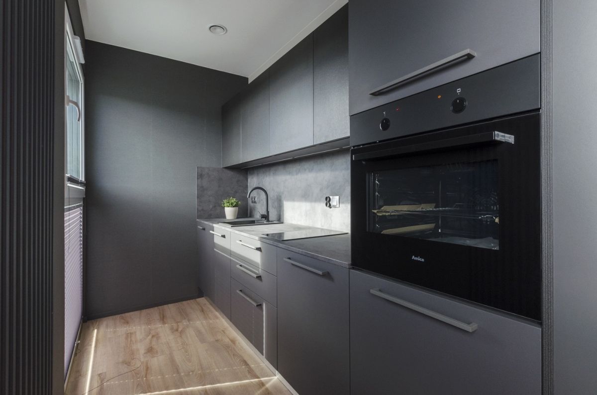 - kuchnia na wymiar z włoskiej zabudowy + pełne AGD (indukcja, piekarnik, lodówka, zmywarka),