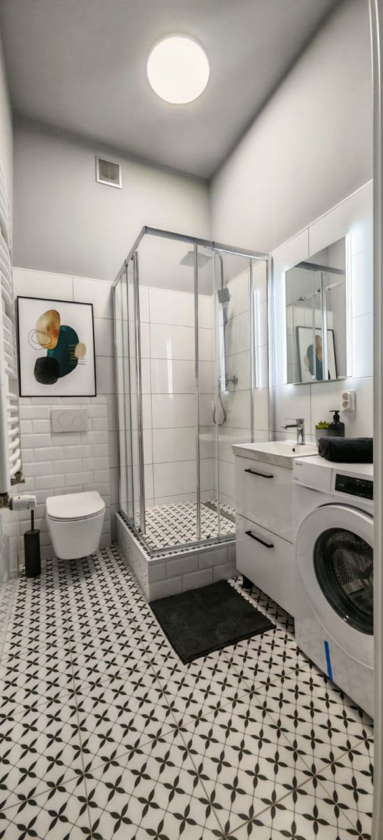 - łazienki z dużym prysznicem,